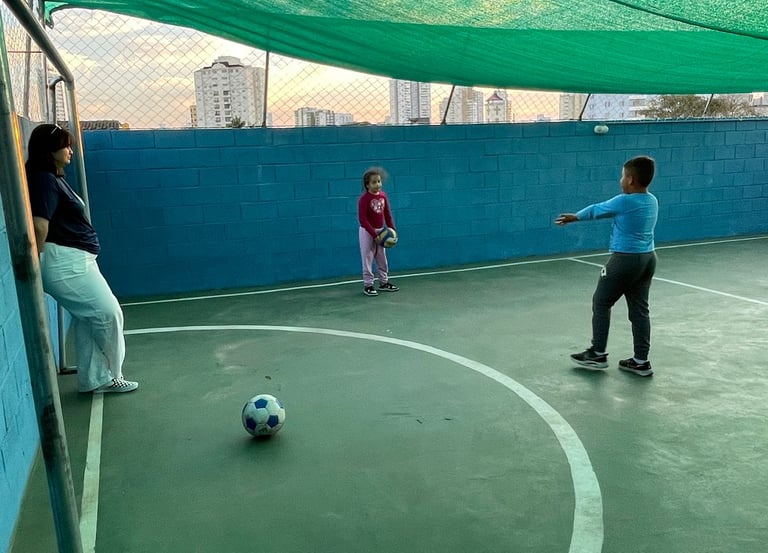 Atividades esportivas que incentivam a saúde e o trabalho em equipe entre as crianças.